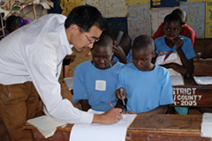 職種は小学校教育で、活動先はジンジャ県のワニャンゲという村の小学校でした。小学校では、算数や体育、図工、クラブ活動などの情操教育を担当しました。算数は特に高学年(5~7年生)向けに週20時間ほど教えていました。低学年だと英語があまり通じませんでしたが、休み時間などは一緒によく遊びました。みんな人懐っこかったですね。